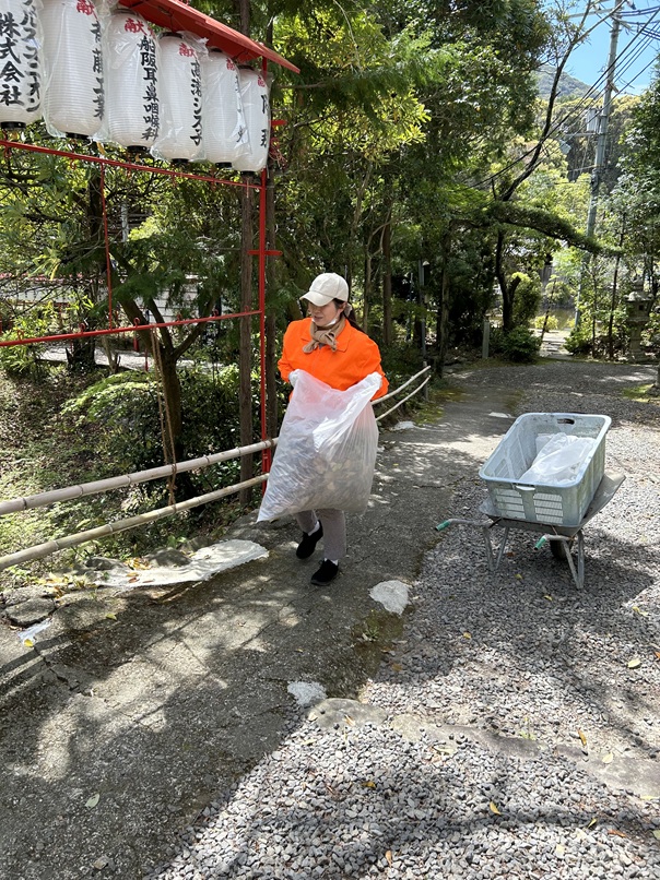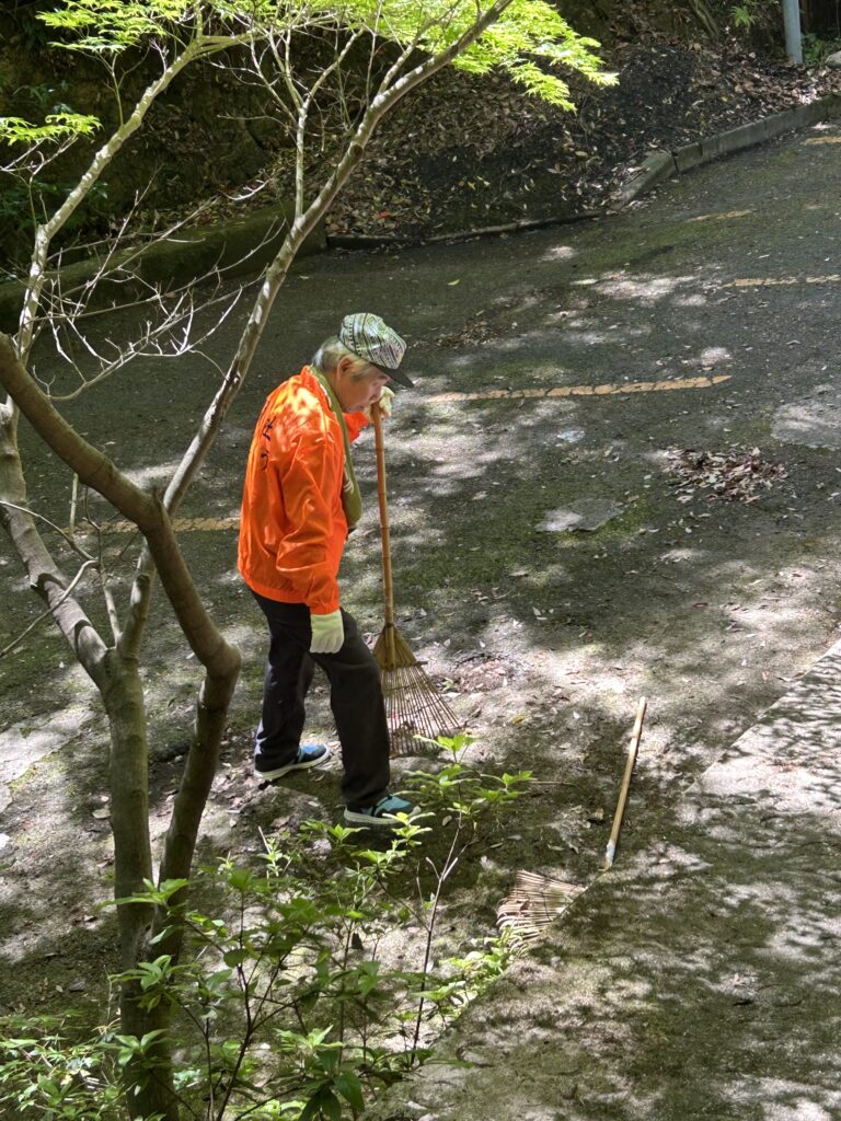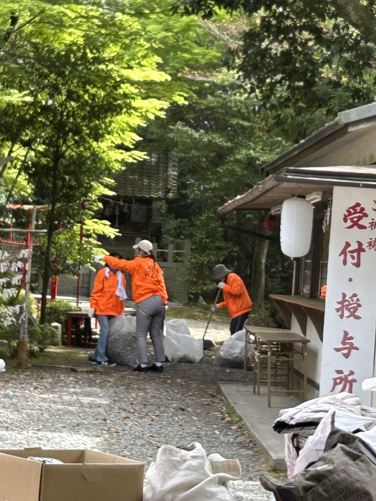 心地よい日差しの中を汗を拭き拭き清掃を続けるうちに、御朱印を頂きにこられた方や参拝に来られた方々から労いの言葉を掛けて頂き、温かくホンワカした嬉しい気持ちになりました。